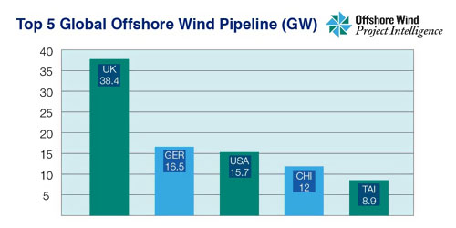 在歐洲以外,美國敏捷興起成為第三大海優(yōu)勢能商場,超越中國大陸的12 GW和中國臺灣的8.9 GW管道項目,到達(dá)15.7吉瓦。正如現(xiàn)已廣泛報導(dǎo)的那樣,美國一直在推進(jìn)海優(yōu)勢能項目的開展,由東海岸各州擬定新政策建議并向開發(fā)商頒發(fā)很多項目。